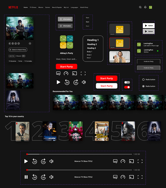 To ensure the Watch Party feature felt like a native extension of Netflix, I created a design system that aligned with Netflix’s established brand identity while introducing new interaction patterns for group viewing.