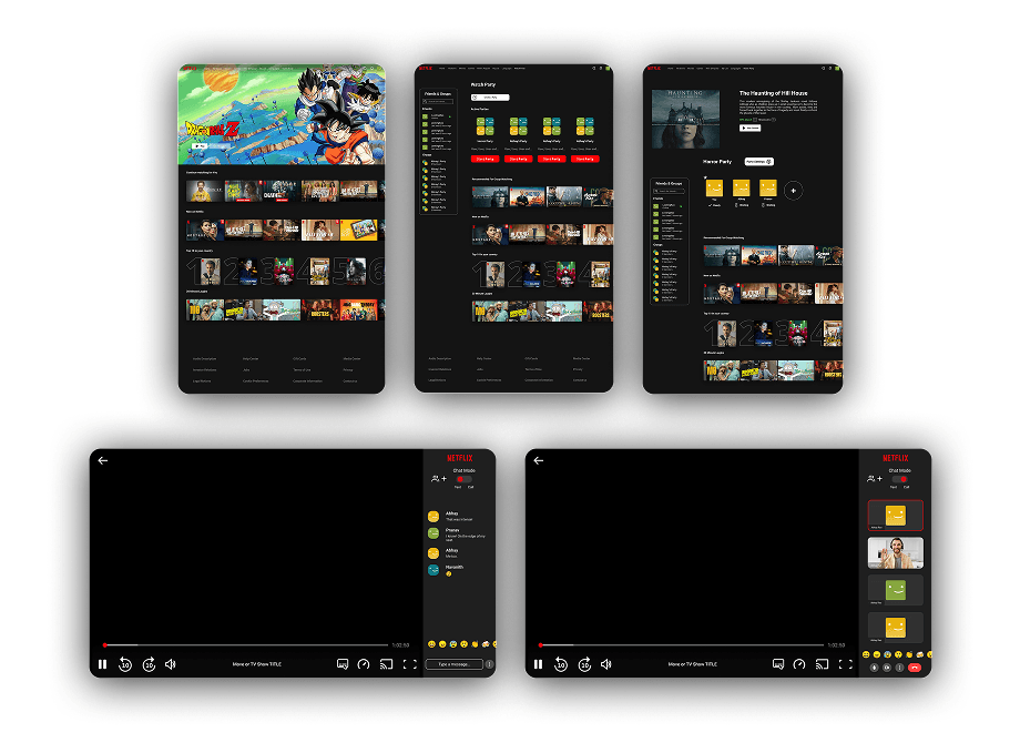 UI Components: Designed modals, toggles, buttons, and chat elements that match Netflix’s minimal aesthetic.