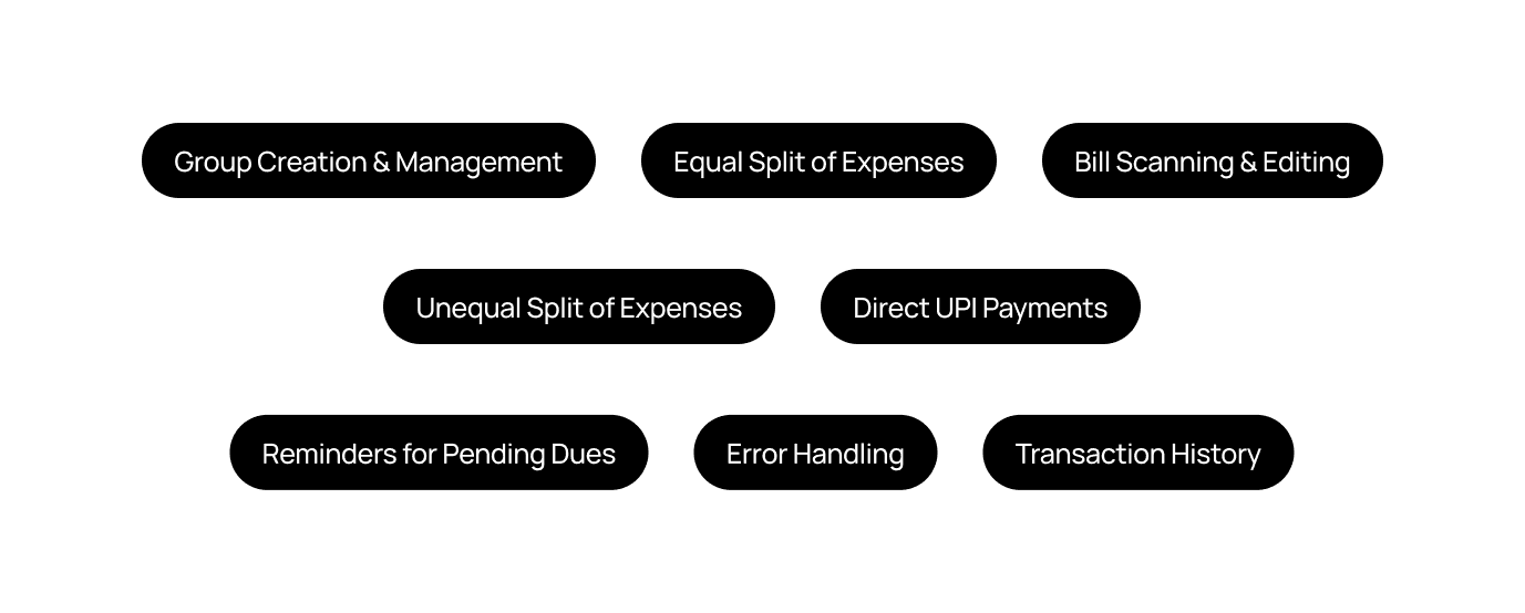 How might we design a solution that makes splitting bills simple, fair, and stress-free, while also integrating with India’s preferred payment methods? Users need more clarity in error handling, flexibility in splitting, and a faster way to settle dues.