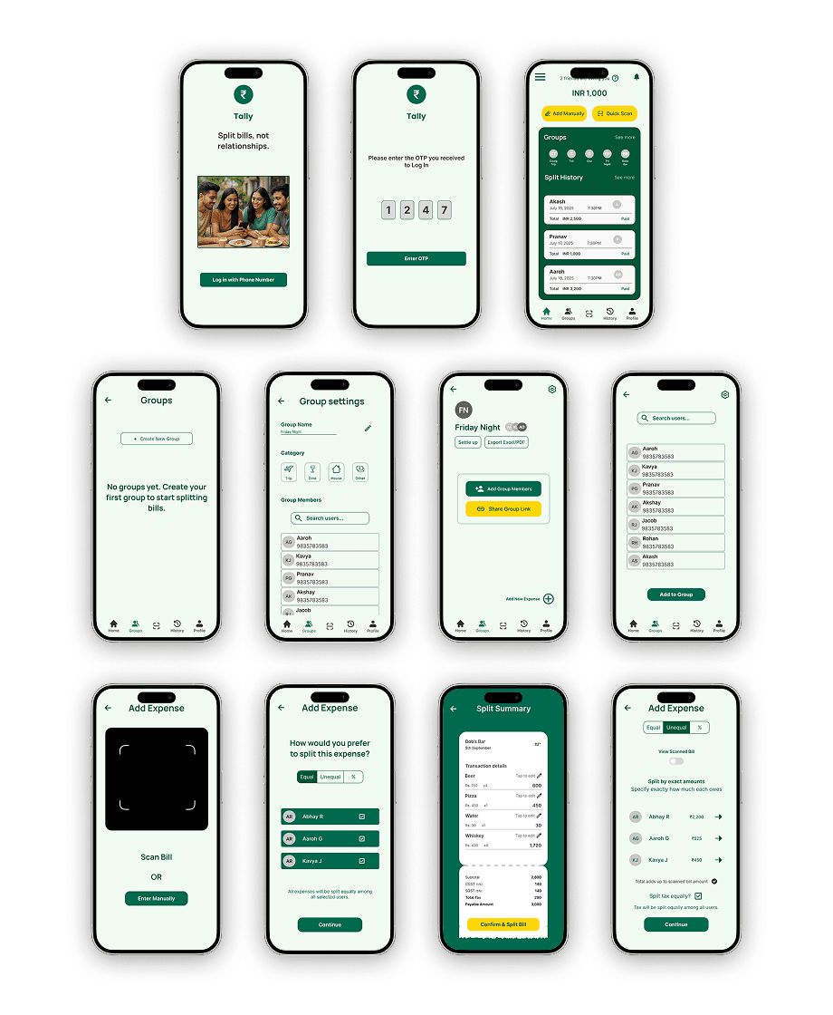 Tally is a UPI-first bill-splitting app designed for young Indian users. It simplifies group expenses with equal/unequal splits, bill scanning, and seamless in-app payments.
