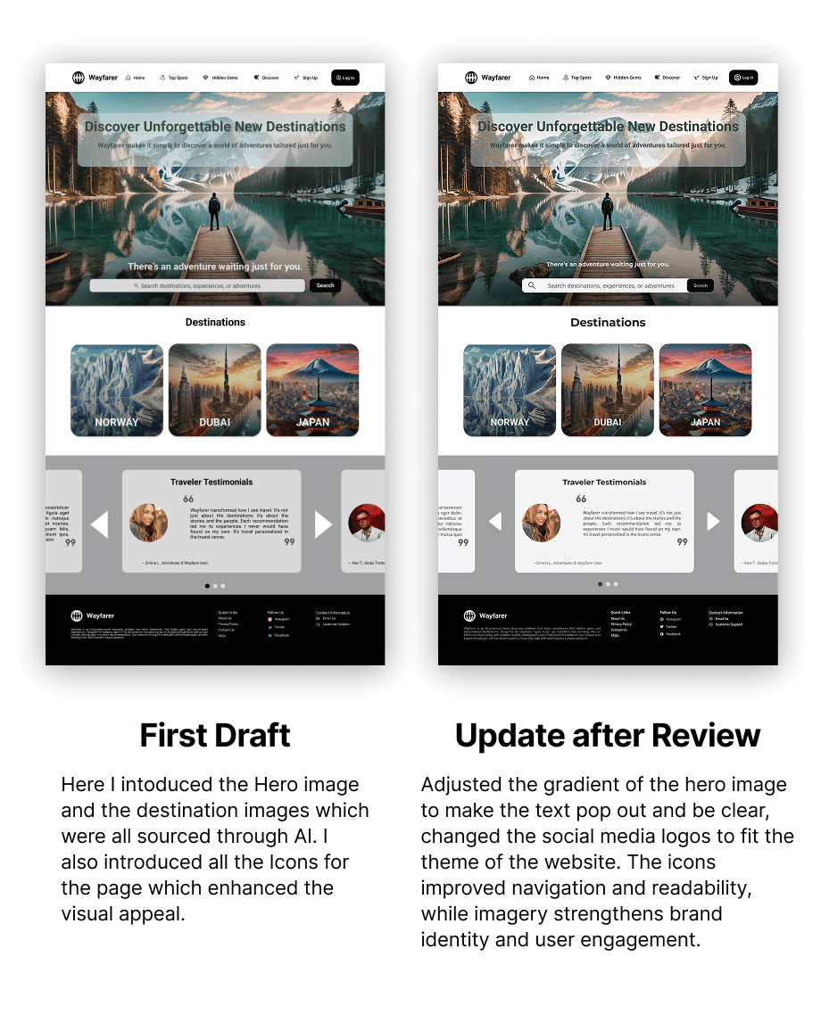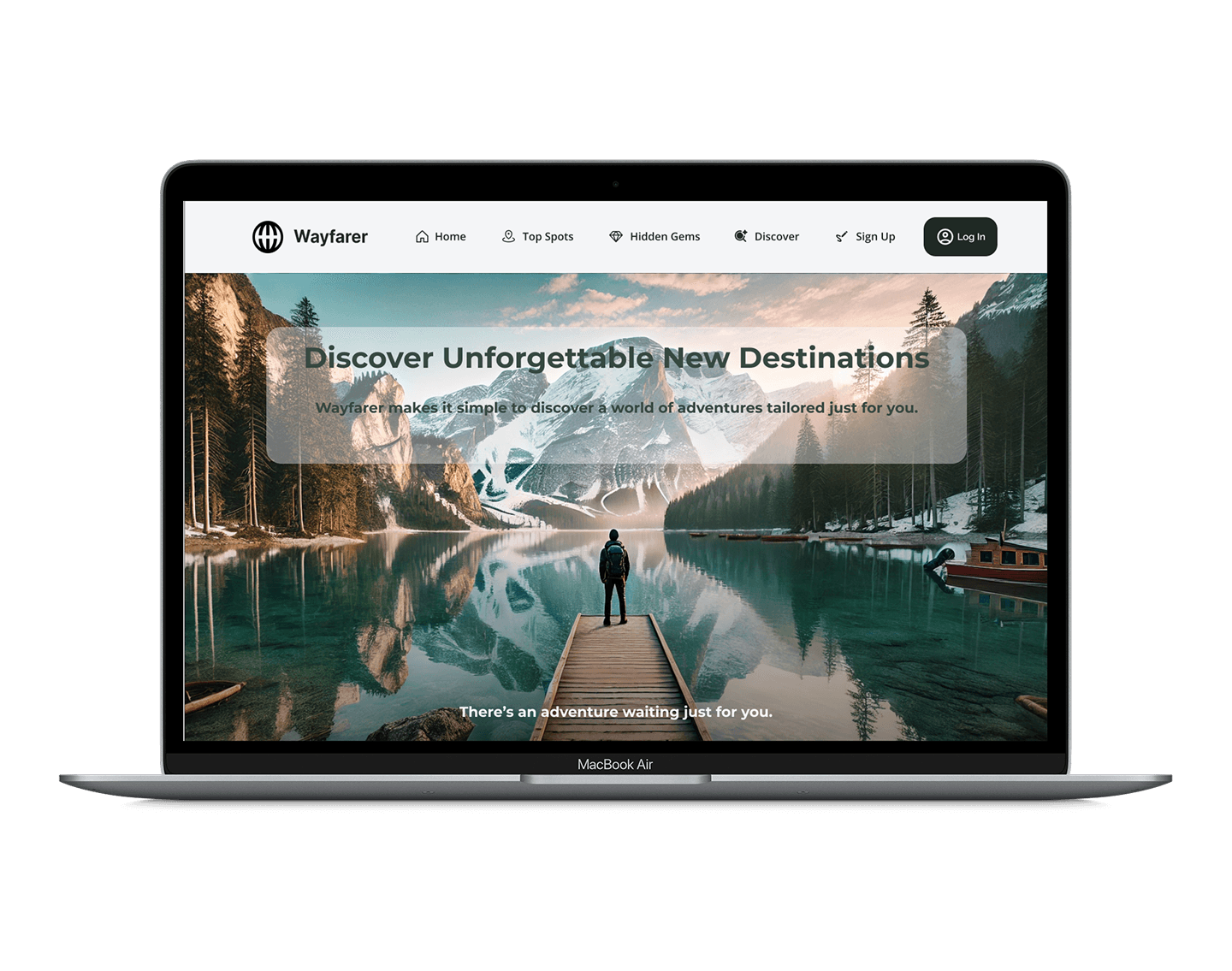 Wayfarer is an AI-powered travel discovery platform that helps adventurers find hidden gems and personalized destinations. Designed for explorers aged 21–30, it transforms trip planning into an immersive, curated experience.